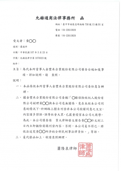 4.業務同仁請勿再傳播不實之訊息,並轉告轄下業務同仁。