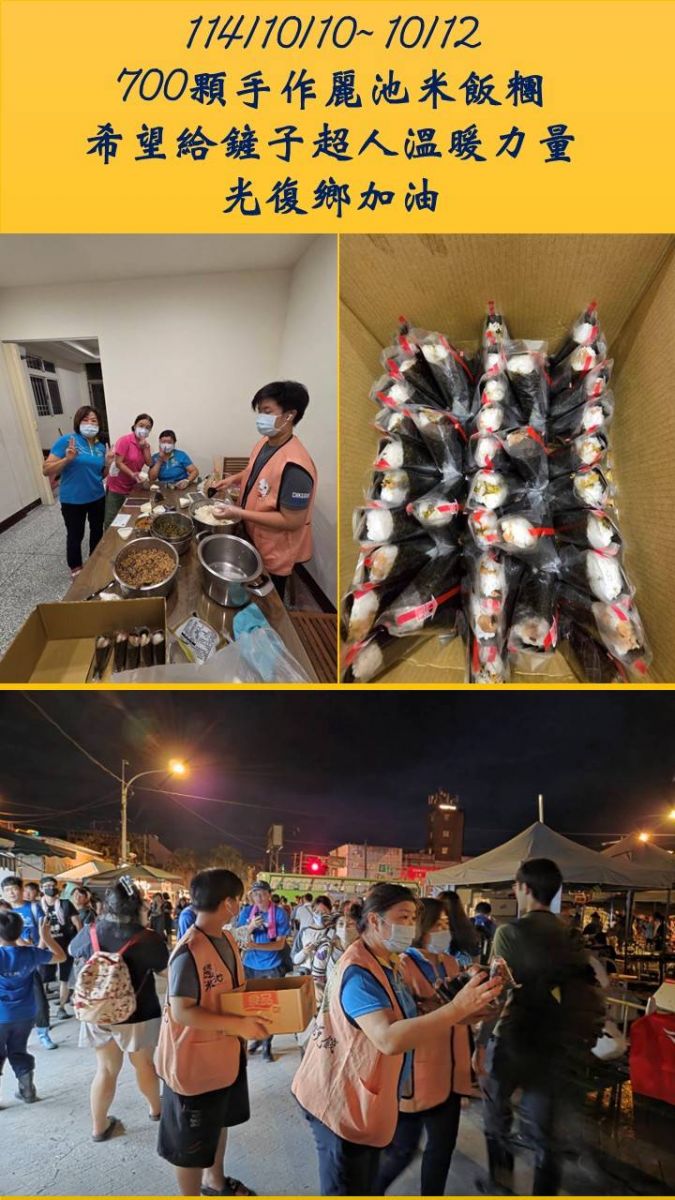 三天假期內,主管團隊更親手製作 麗池米御飯糰 700 顆,分送給救災志工、國軍弟兄與鏟子超人,將企業的溫暖與感謝傳遞給災區民眾。
